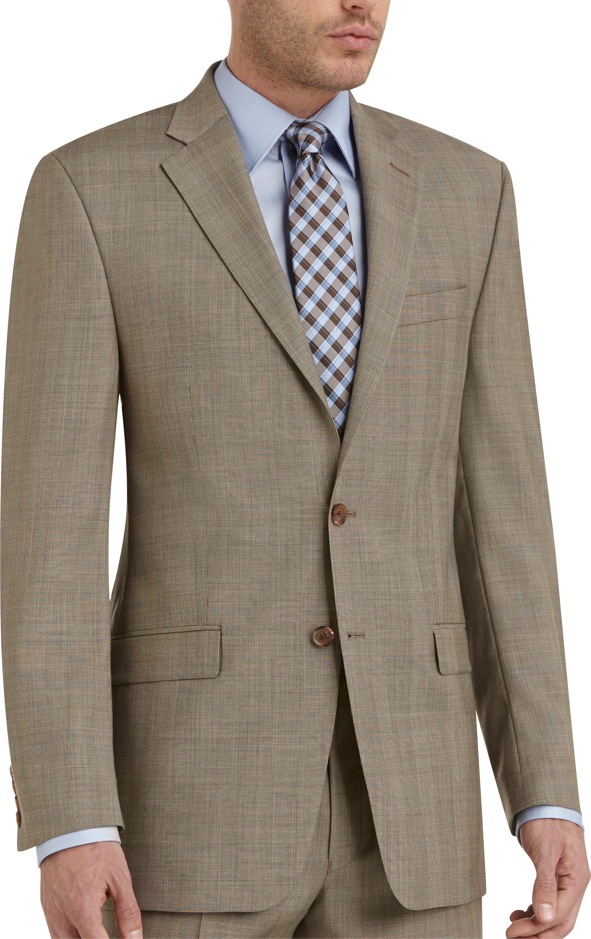 In understated plaid, this suit features a two-button jacket and pleated slacks. With its classic fit, 100% wool fabric and subtle tones, it will be a versatile addition to your wardrobe.